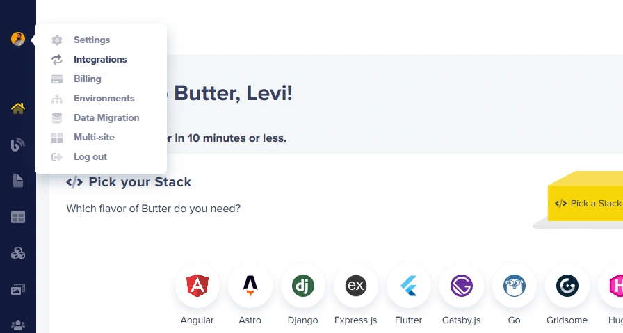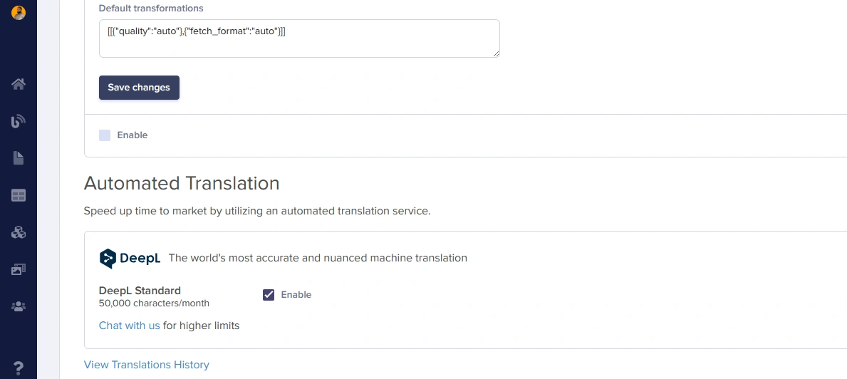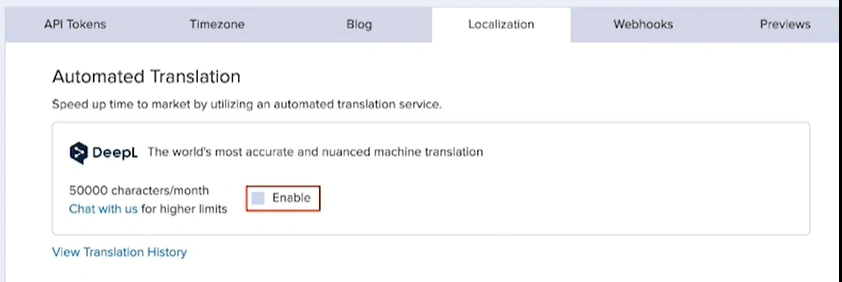 To enable the DeepL integration, go to Settings > Integrations and tick the Enable checkbox. No account with DeepL is necessary.- Log in to your ButterCMS dashboard