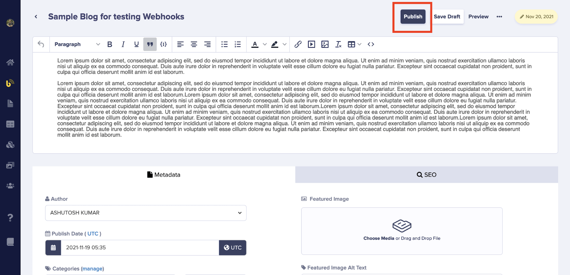 Enter your webhook endpoint URL in the configuration screen. This is where ButterCMS will send HTTP POST requests when content events occur.URL requirements
