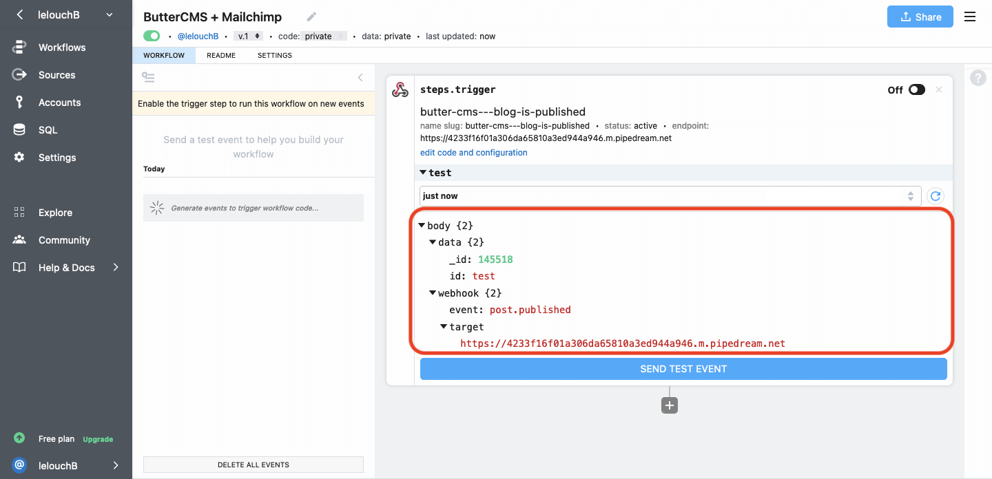 Enable debug mode during development to see full payload details:Testing webhooks locally