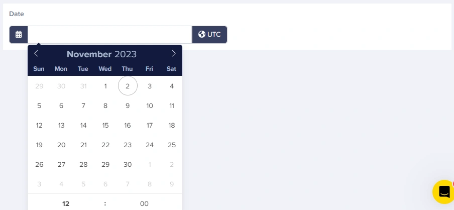The Date field provides you with a calendar selector that enables content editors to easily pick dates and times, which will be returned by the API in ISO 8601 formatted strings.