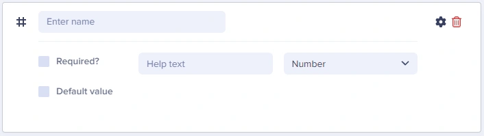 The Number field only accepts number entries (integers and decimals) and returns a JSON number in the API, which makes it perfect for prices, quantities, and dimensions.