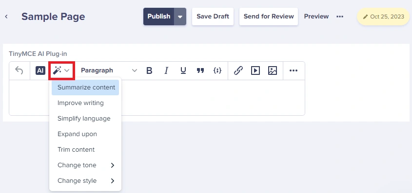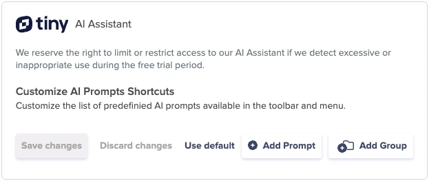 There are two key reasons to enable the TinyMCE AI Assistant:- Familiar UI for content creators - The AI tools are embedded directly in the editor interface that your team already knows