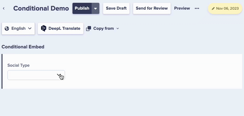 Consider setting default values for conditional fields to guide content editors and ensure consistency.