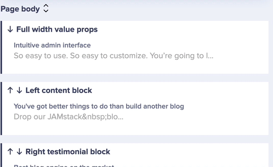 To re-order Components, you simply have to drag & drop a Component up or down your content layout.Using arrow controls