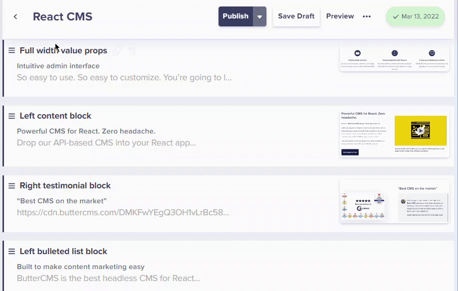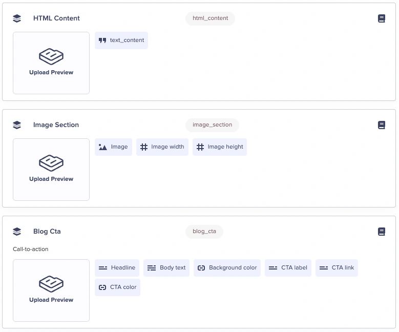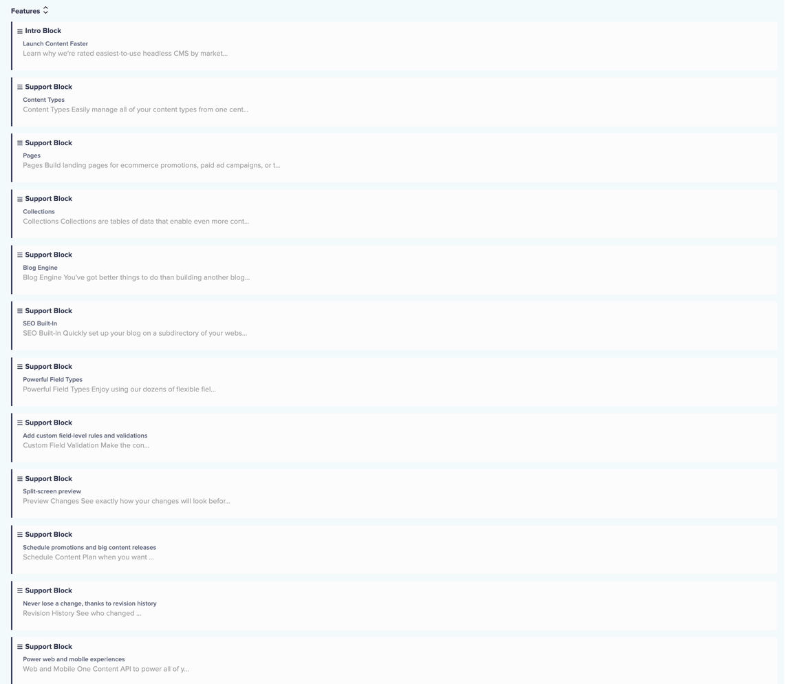 Only include components that make sense for each Page Type. A careers page doesn’t need a product pricing component.