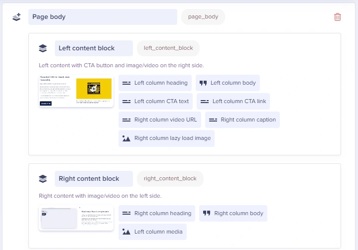 Name Component Picker fields consistently across Page Types (e.g., always “Body” or always “Sections”).