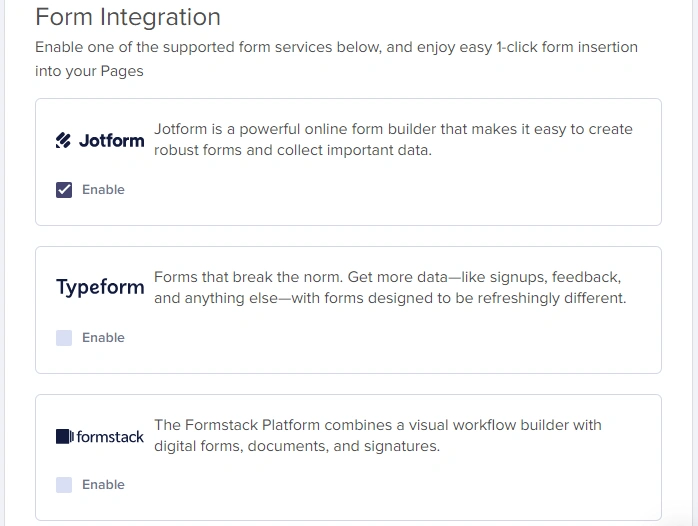 Enabling Jotform