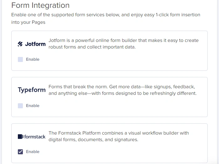- Tick the Formstack checkbox to enable it.