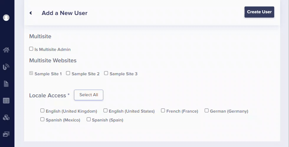 - Site Access - Select specific sites the user can access. This grants access to all environments in the site; if you