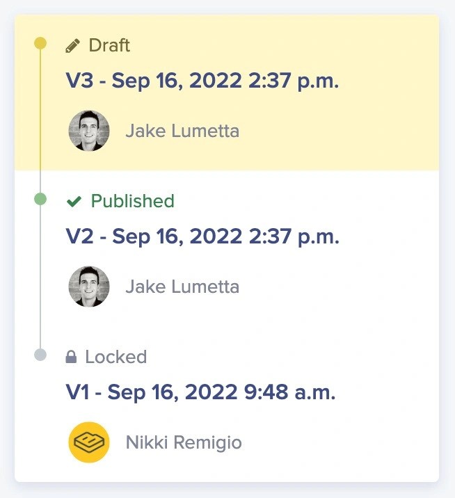 Content versions in the ButterCMS version history can exist in several states, each indicated by a distinct visual symbol:Draft state