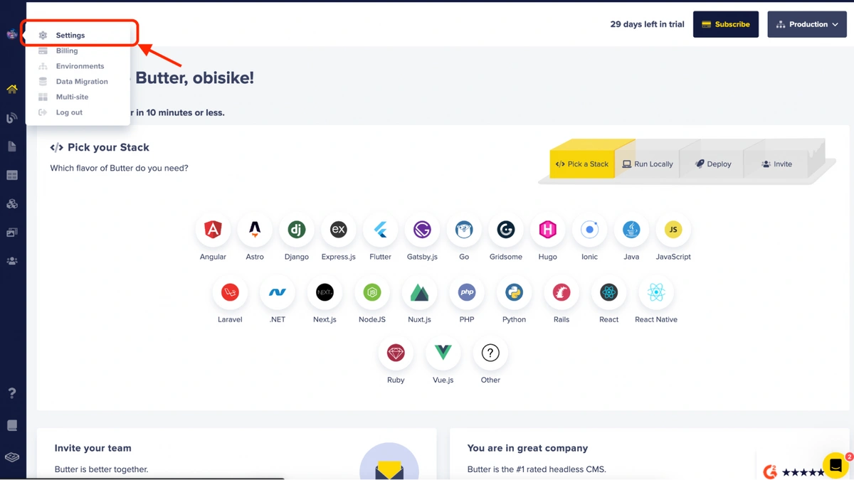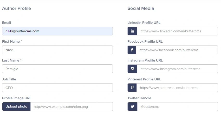 - blog settings for your ButterCMS Blog engine